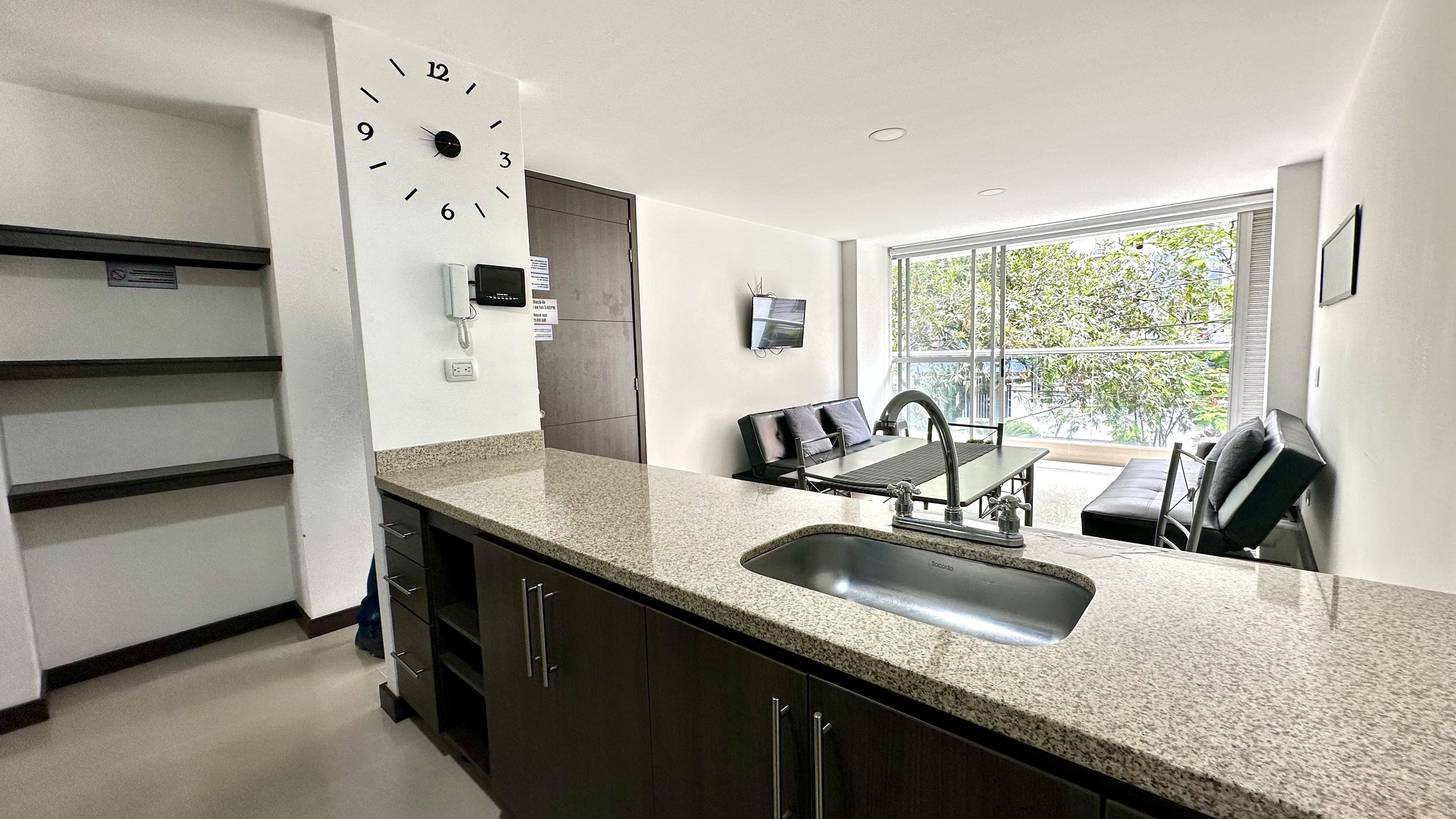 Ubicado en Medellín, barrio Laureles - Conquistadores, a 3 cuadras del centro comercial Unicentro, plaza mayor y parques del río, a 4 km del Parque El Poblado, y a poca distancia del Pueblito Paisa y de la Calle 70. Todos los apartamentos están equipados con Smart TV, dos baños privados, cocina dotada, sala, comedor, balcon, parqueadero, dos habitaciones, y cuentan con wifi gratis en todo el alojamiento. El alojamiento está a 4 km del Parque Lleras, a 1 km del Segundo Parque Laureles y a 5 minutos a pie de la Plaza de Toros La Macarena y Plaza Mayor. Ambiente tranquilo para descansar y ubicación segura y estratégica para movilizarse.